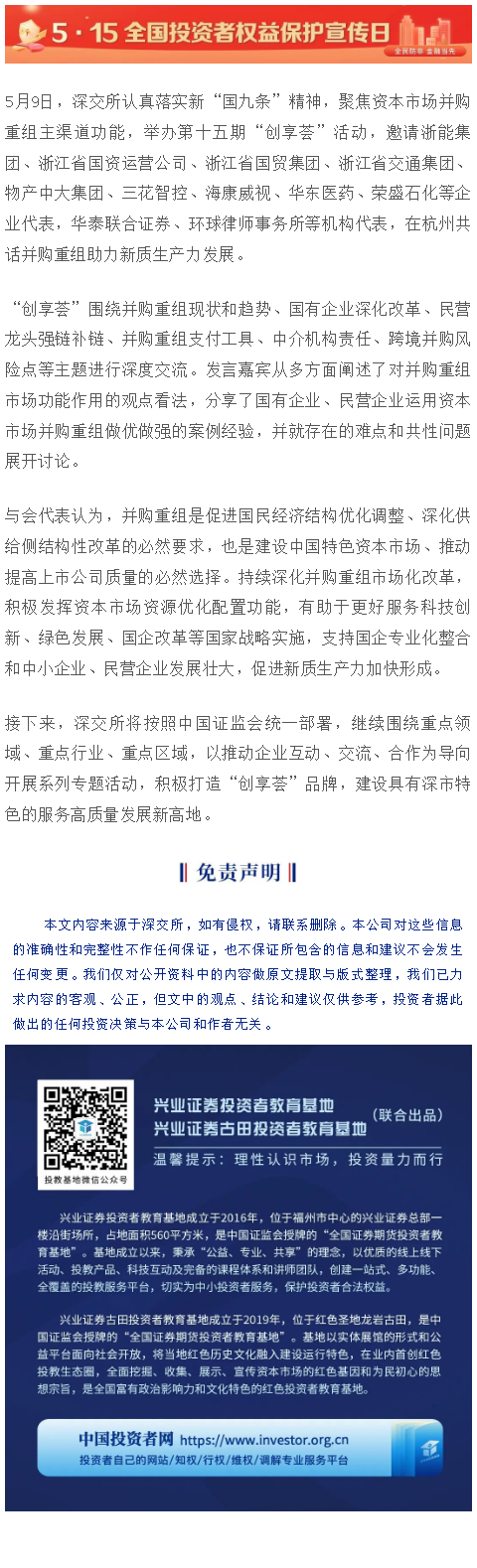 【兴·分享】“深交所·创享荟”举办并购重组专场活动 助力培育和发展新质生产力