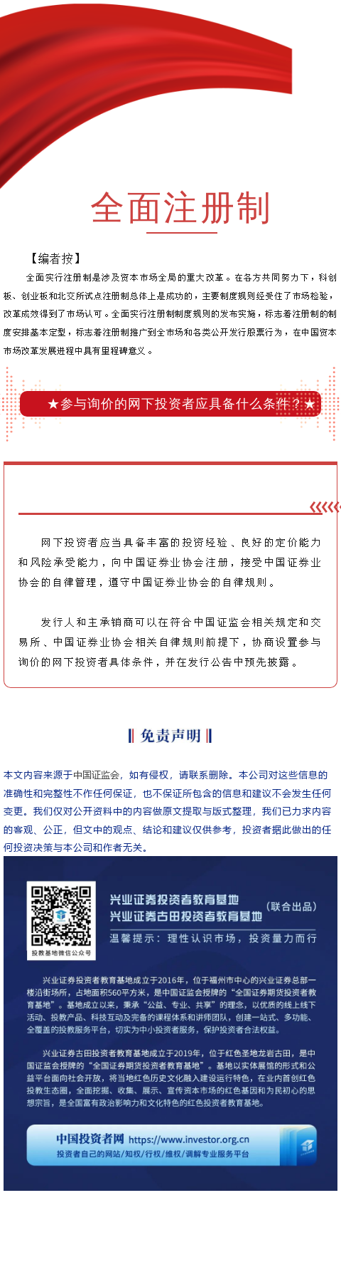 【兴·分享】全面注册制 | 投教问答55——参与询价的网下投资者应具备什么条件?