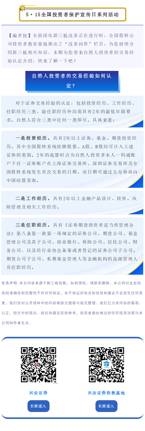 【投教·新三板新风】改革问答 | 第十六期:自然人投资者的交易经验如何认定?