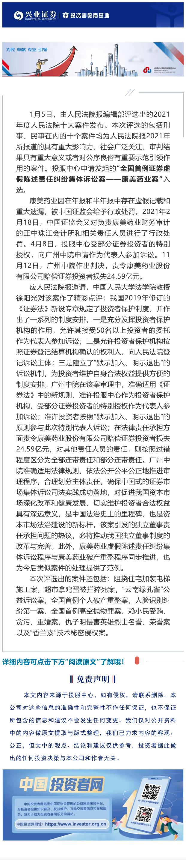 【兴·分享】“全国首例证券虚假陈述责任纠纷集体诉讼案——康美药业案”入选2021年度人民法院十大案件