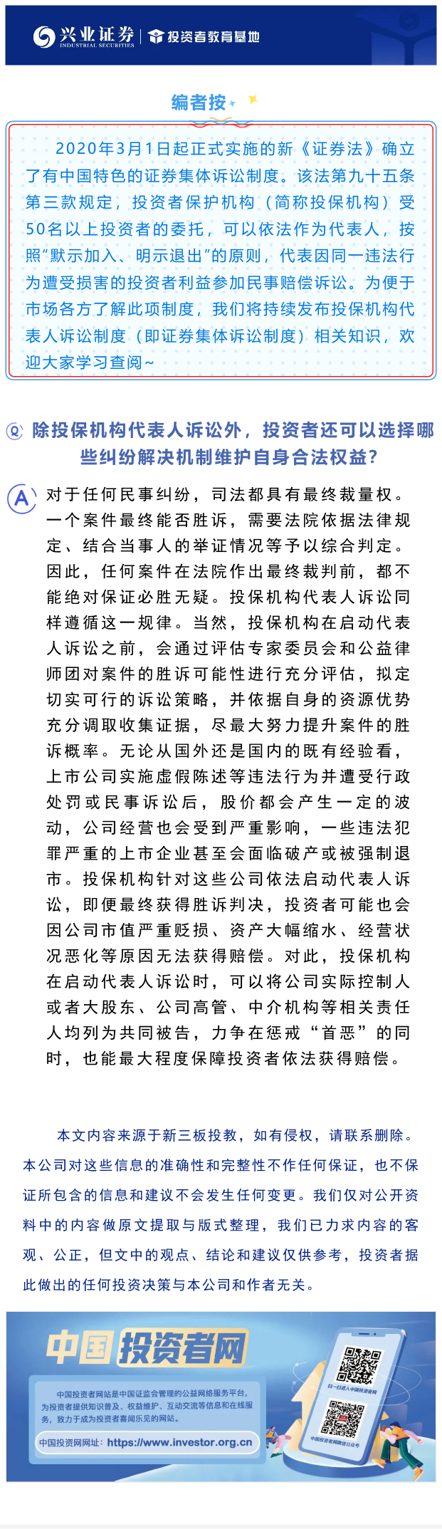 【兴·分享】除投保机构代表人诉讼外,投资者还可以选择哪些纠纷解决机制维护自身合法权益?