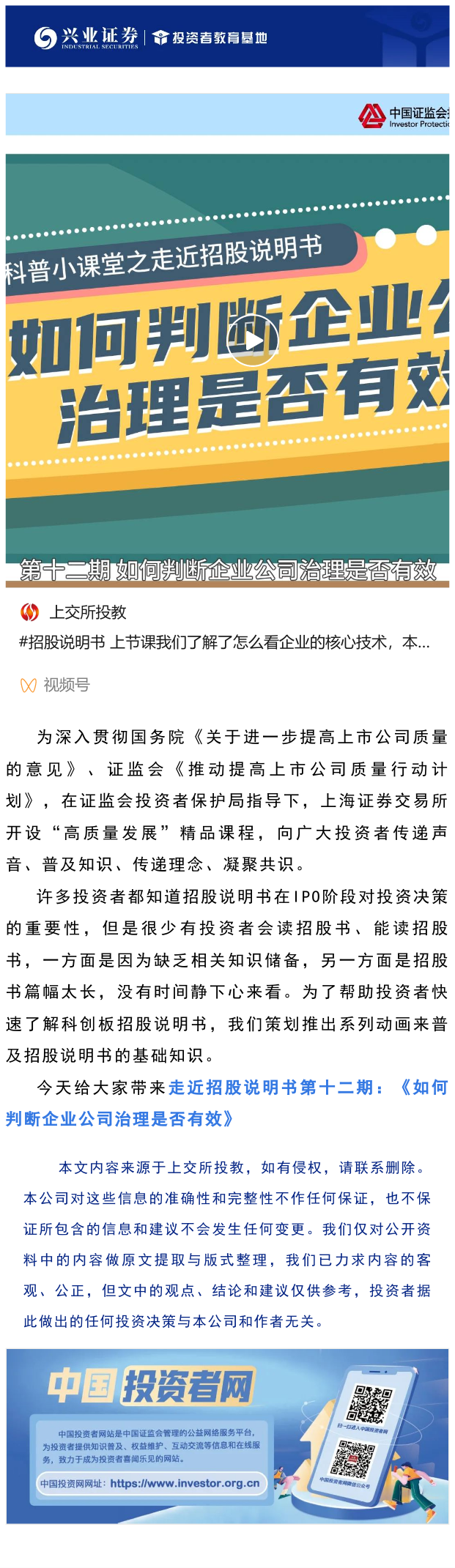 【兴·分享】读懂上市公司报告 | 走近招股说明书第12期《如何判断企业公司治理是否有效》