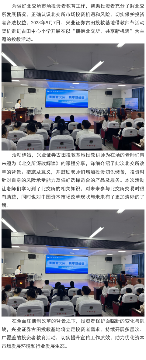【兴·风采】兴业证券古田投教基地走进古田中心小学开展在以“拥抱北交所,共享新机遇”为主题的投教活动