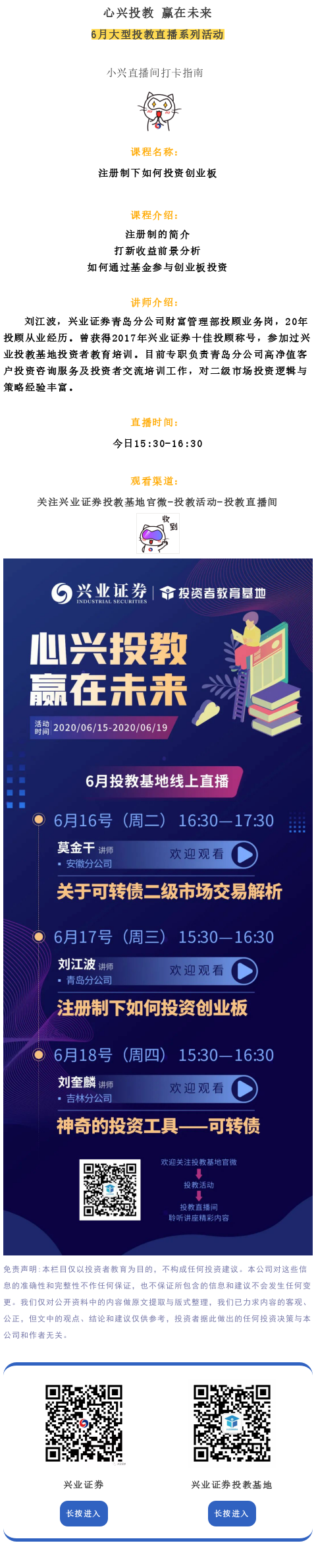 【投教·兴预告】今日直播速递 | 注册制下如何投资创业板