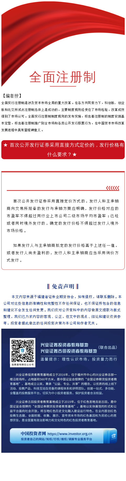 【兴·分享】全面注册制 | 投教问答47——首次公开发行证券采用直接方式定价的,发行价格有什么要求?