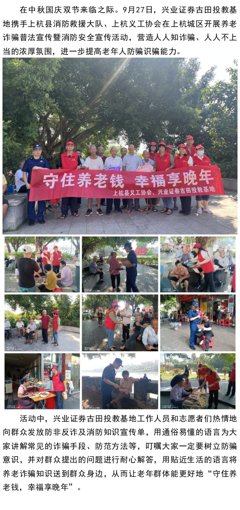 【兴·风采】兴业证券古田投教基地携手上杭县消防救援大队、上杭义工协会在上杭城区开展养老诈骗普法宣传暨消防安全宣传活动