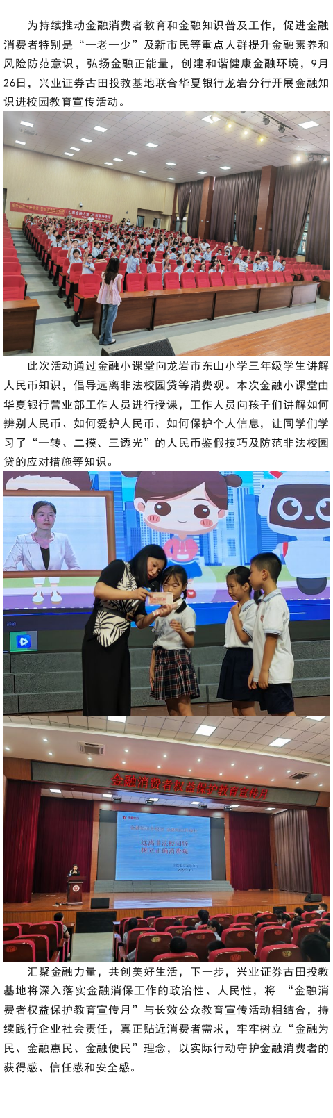 【兴·风采】兴业证券古田投教基地联合华夏银行龙岩分行走进龙岩东山小学开展金融知识进校园宣传活动