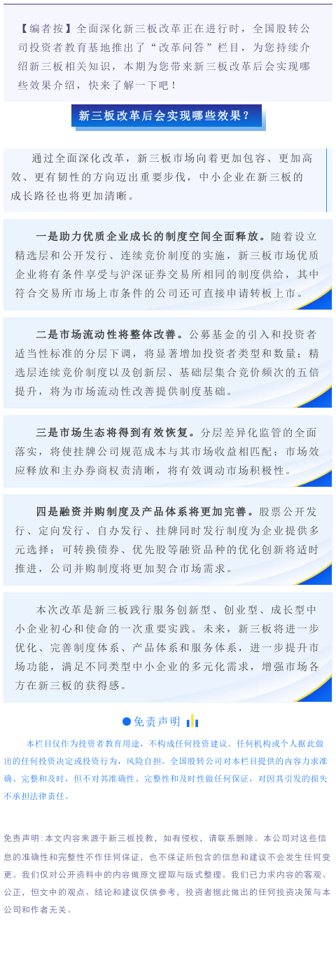 【投教·新三板新风】改革问答 | 第五期:新三板改革后会实现哪些效果?