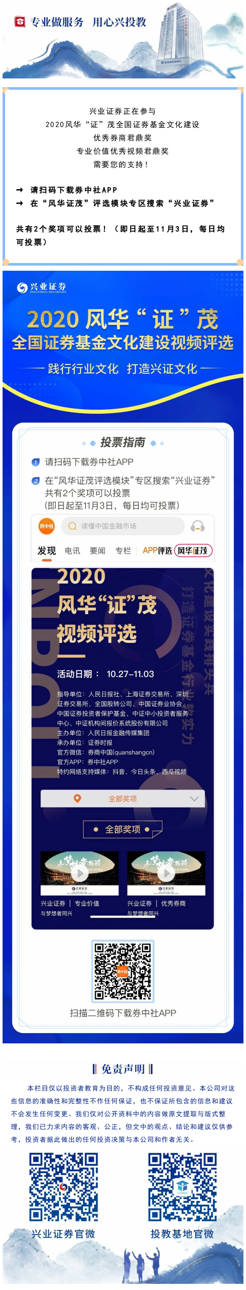 【投票】兴业证券正在参与券商中国2020风华“证”茂证券基金文化建设君鼎奖评选,等您来支持!