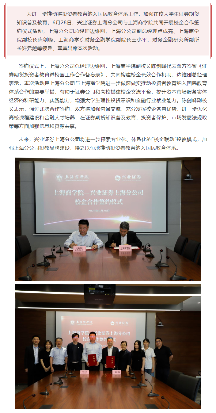 【兴·风采】上海分公司与上海商学院开展校企合作签约仪式活动