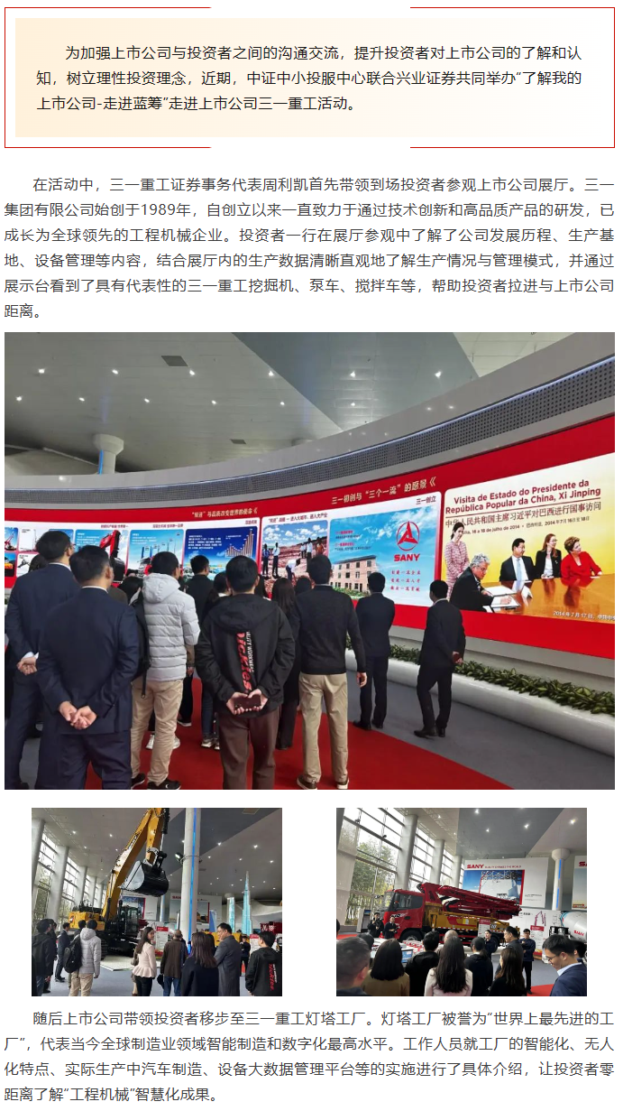【兴·风采】兴业证券联合投服中心举办“了解我的上市公司—走进蓝筹”之走进三一重工
