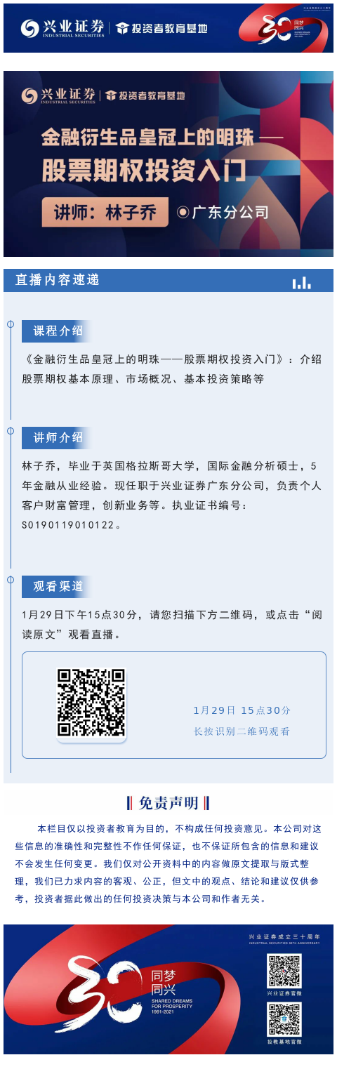 【兴·直播】15:30直播已预订√ | 金融衍生品皇冠上的明珠——股票期权,该如何投资?