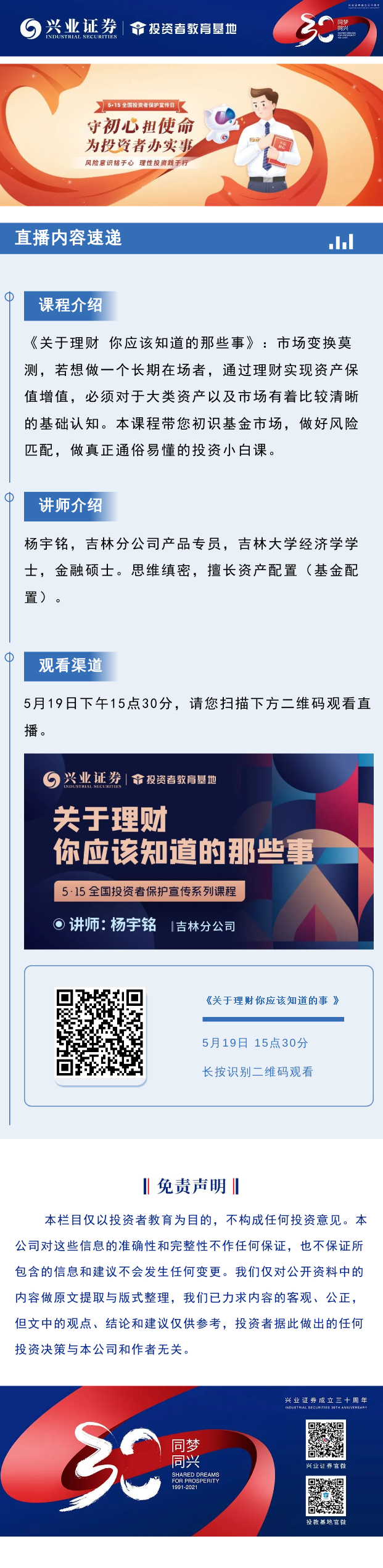【兴·预告】15:30直播 | 关于理财 你应该知道的那些事