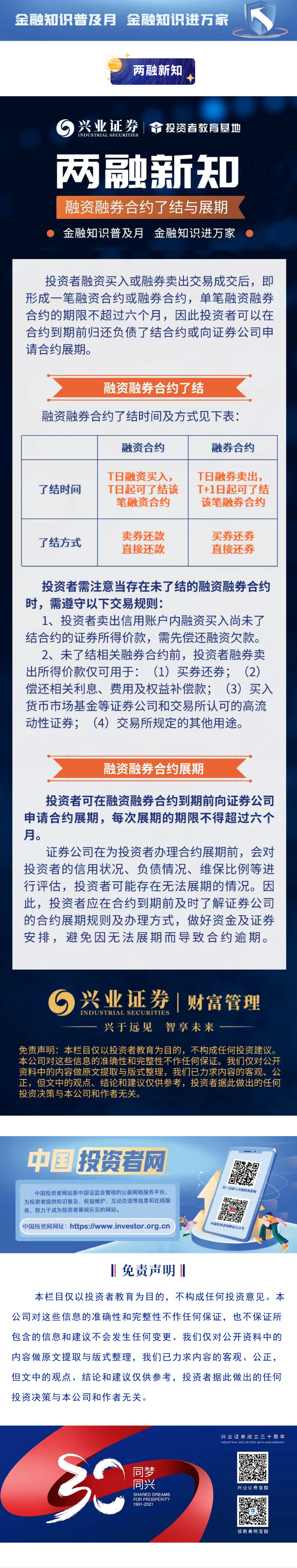 【金融知识普及月】两融新知:融资融券合约了结与展期