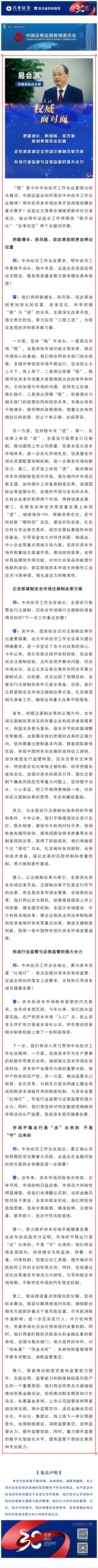 【兴·分享】稳字当头 改革攻坚——中国证监会主席易会满接受新华社记者采访