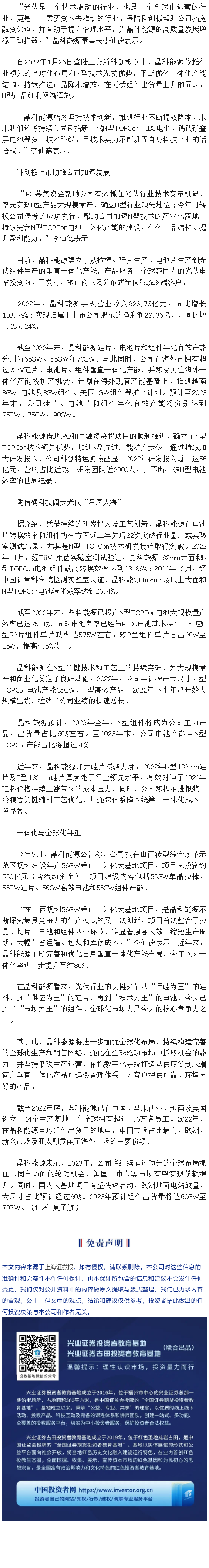 【兴·分享】媒体视角 | 科创50故事汇:晶科能源,N型TOPCon电池研发接连取得突破