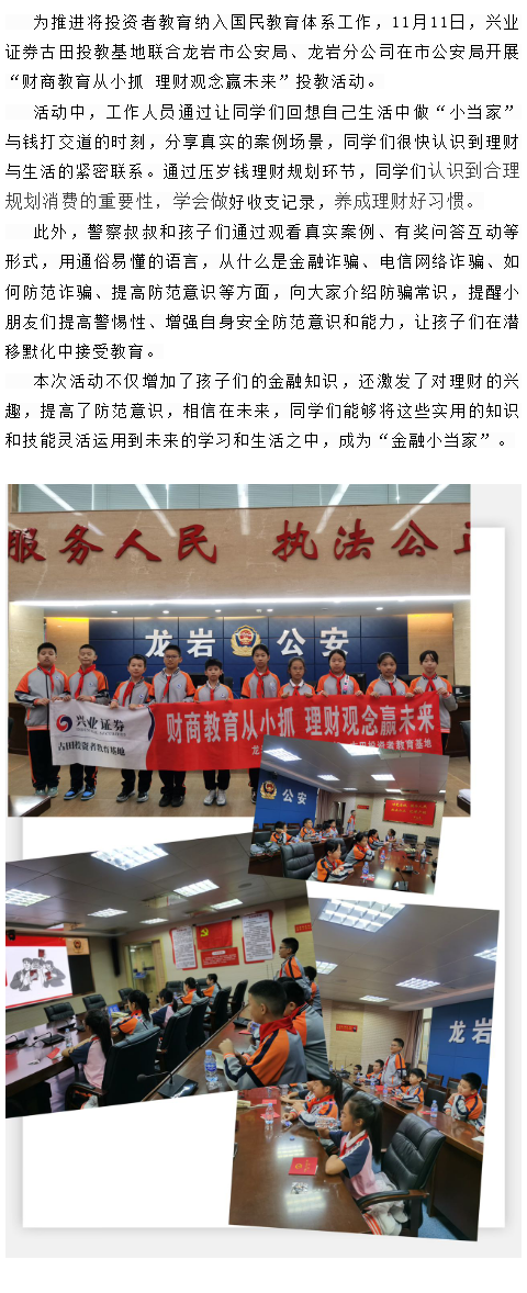 【兴·风采】兴业证券古田投教基地联合龙岩分公司在龙岩市公安局开展“财商教育从小抓,理财观念赢未来”活动