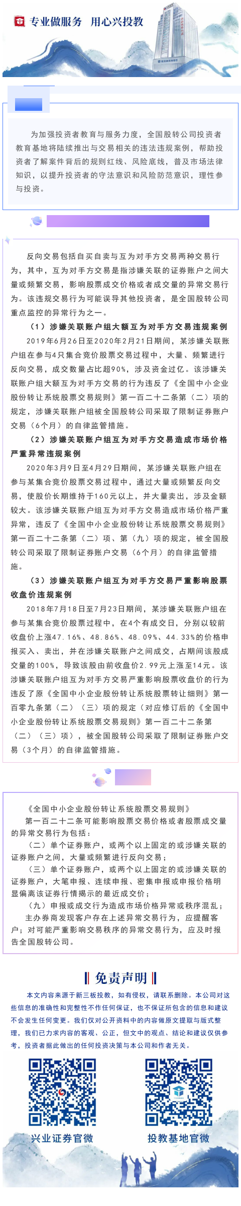 【投教·新三板】风险提示案例 | 涉嫌关联账户组互为对手方交易违规案例