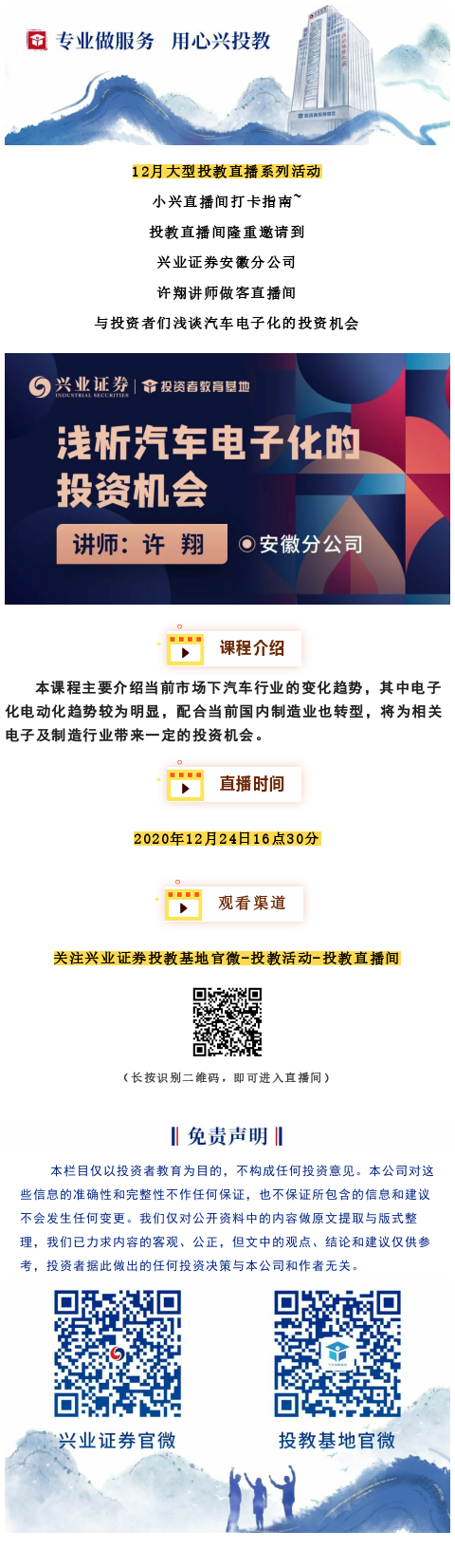【兴·直播】《浅析汽车电子化的投资机会》,16:30分准时开启