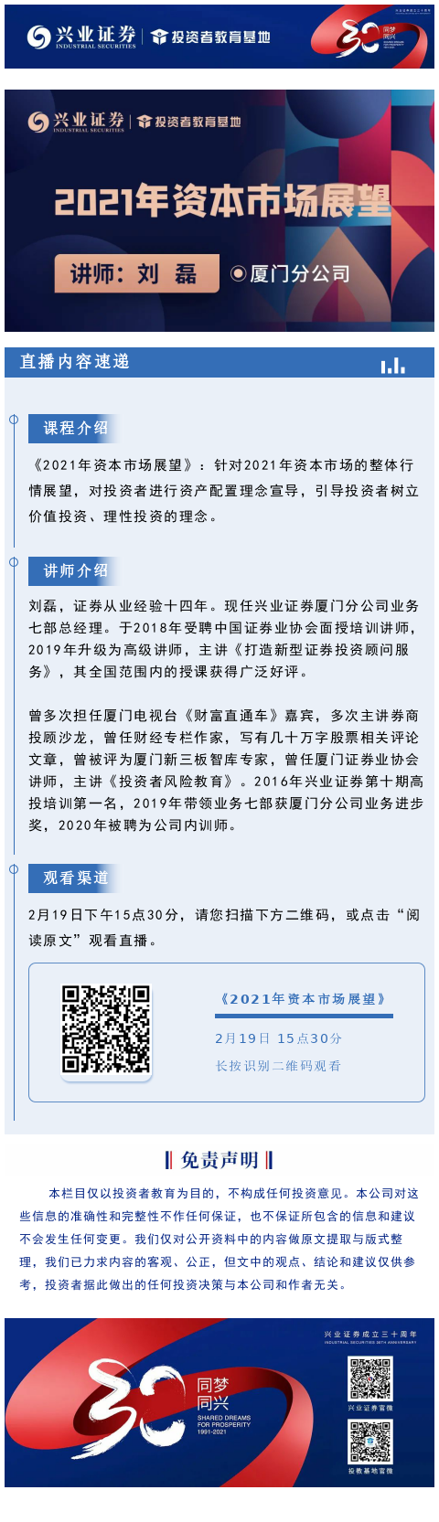 【兴·直播】15:30分直播间,金牌讲师与您一同展望2021年资本市场
