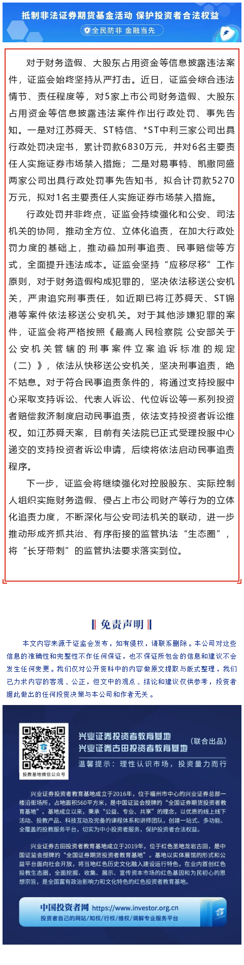 【兴·分享】证监会严肃查处5起上市公司财务造假等信息披露违法案件
