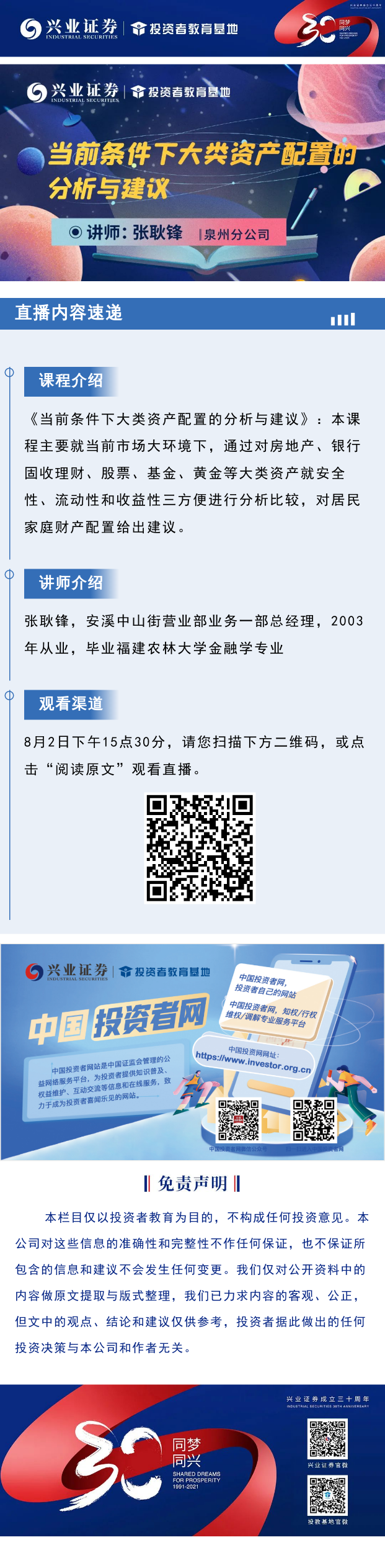 【兴·预告】15:30直播 | 当前条件下大类资产配置的分析与建议