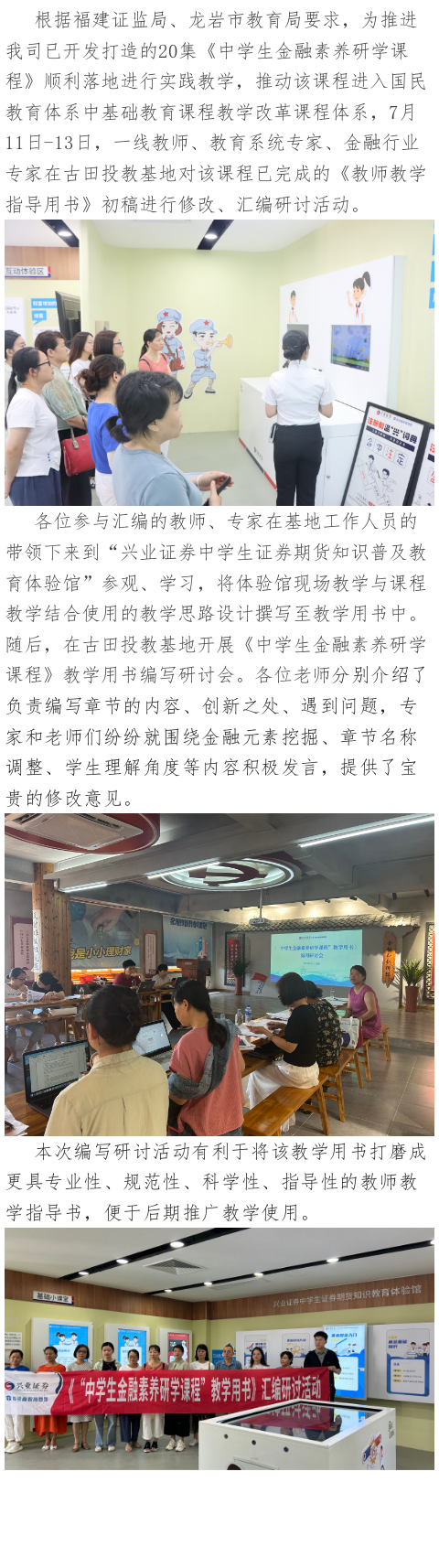 【兴·风采】兴业证券在古田投教基地开展《中学生金融素养研学课程》教学用书编写研讨会