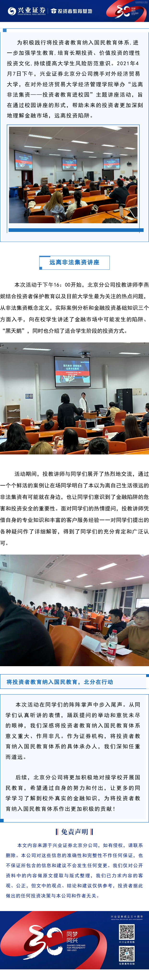 【兴·风采】兴业证券北京分公司走进对外经济贸易大学 开展“ 远离非法集资 ”国民教育讲座