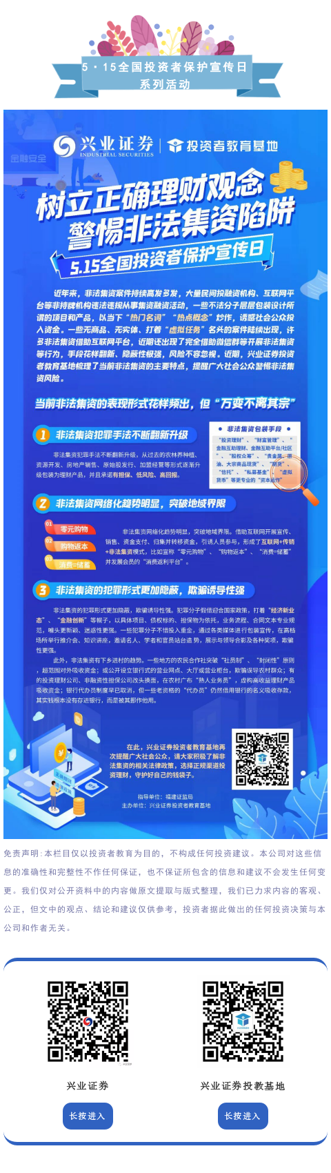 【投教·5·15打非防非】树立正确理财观念 警惕非法集资陷阱