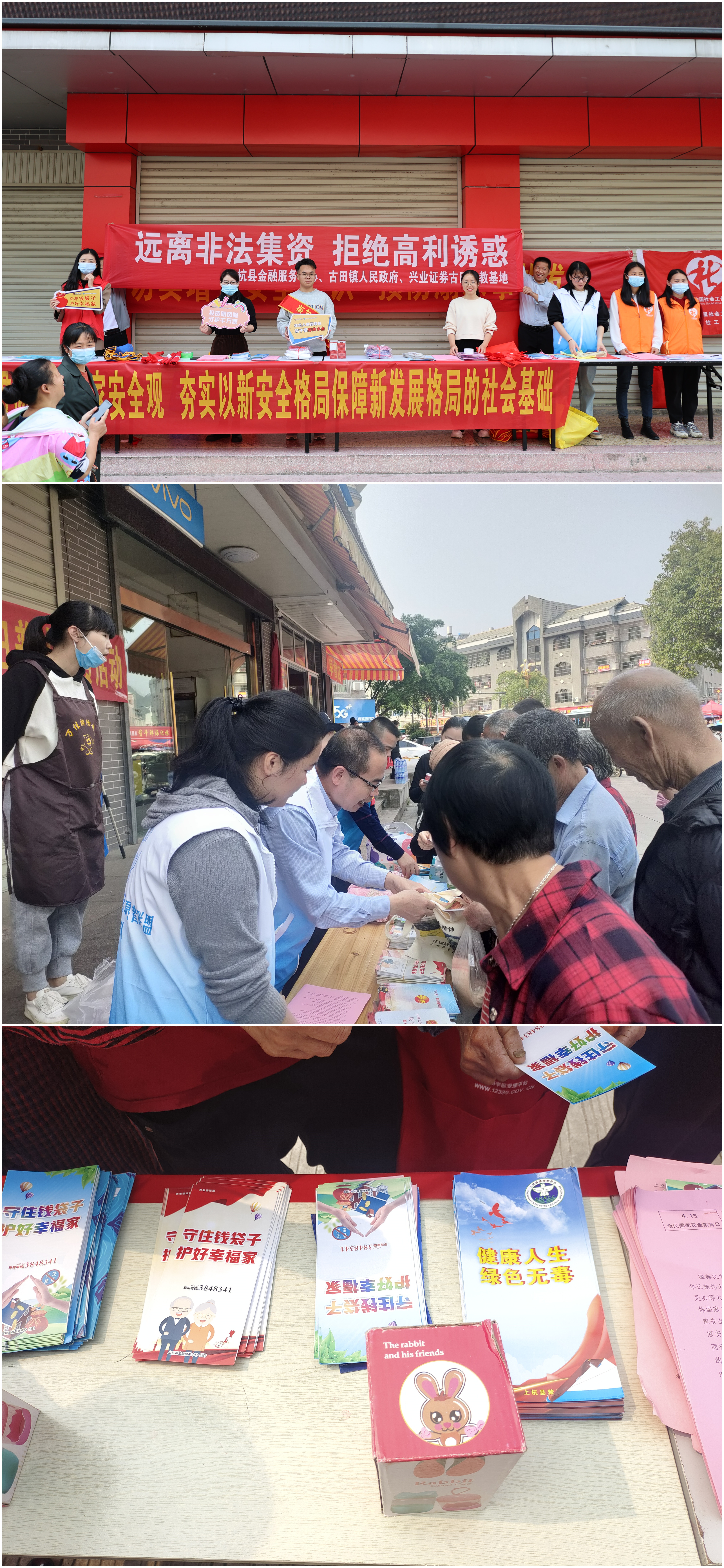 兴业证券古田投教基地联合上杭县金融服务中心、古田镇政府、古田社工站开展4·15全民国家安全教育日暨防范和防非宣传活动。