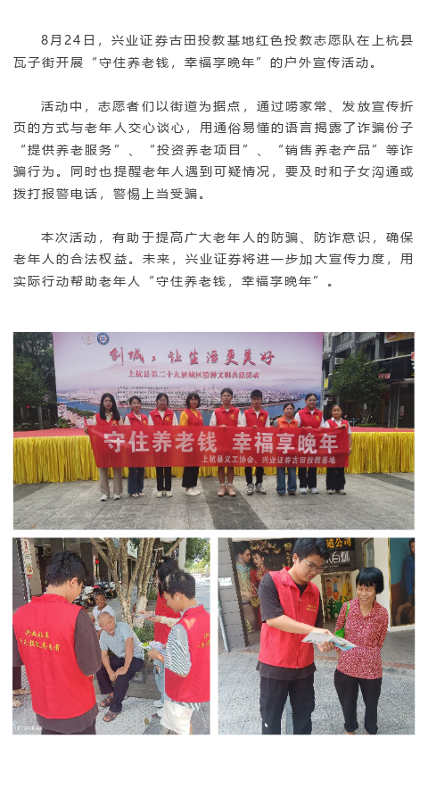 【兴·风采】兴业证券红色投教志愿队在上杭县瓦子街开展“守住养老钱,幸福享晚年”户外宣传活动