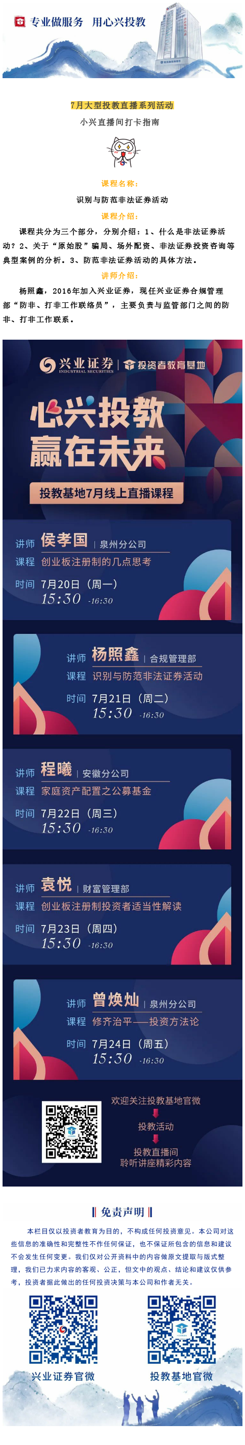【投教·兴预告】今日直播|识别与防范非法证券活动