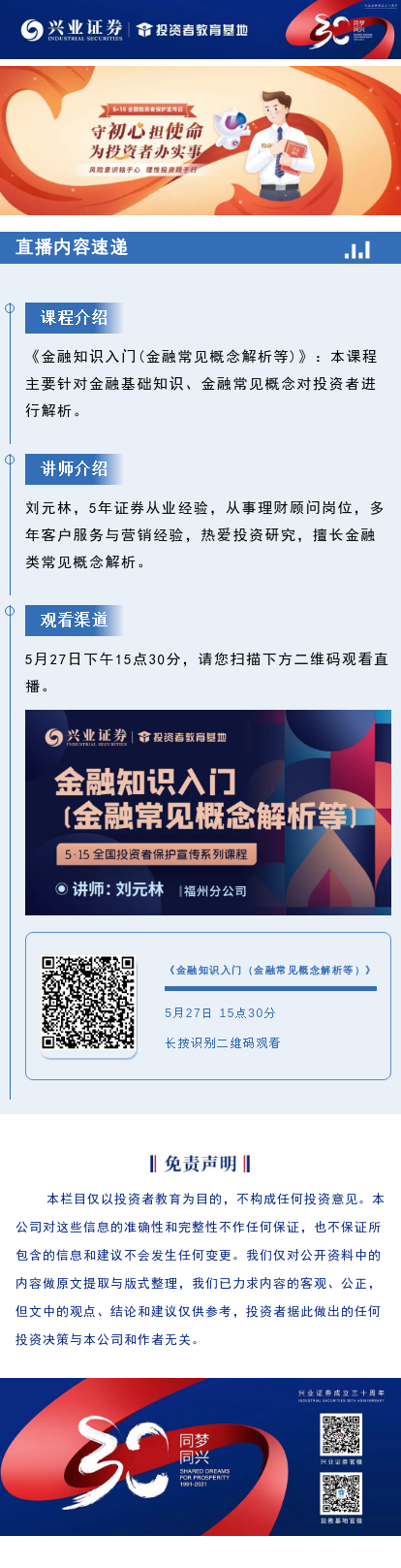 【兴·预告】15:30直播 | 金融知识入门(金融常见概念解析等)