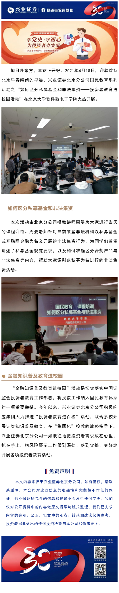 【兴·风采】兴业证券北京分公司走进北京大学开展“ 如何区分私募基金和非法集资 ”国民教育专题讲座