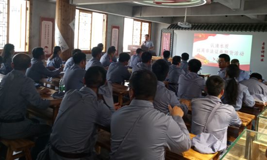 5月25日,中铁十一局54名党员职工在古田投教基地二楼投教讲坛区开展党建和投教活动。