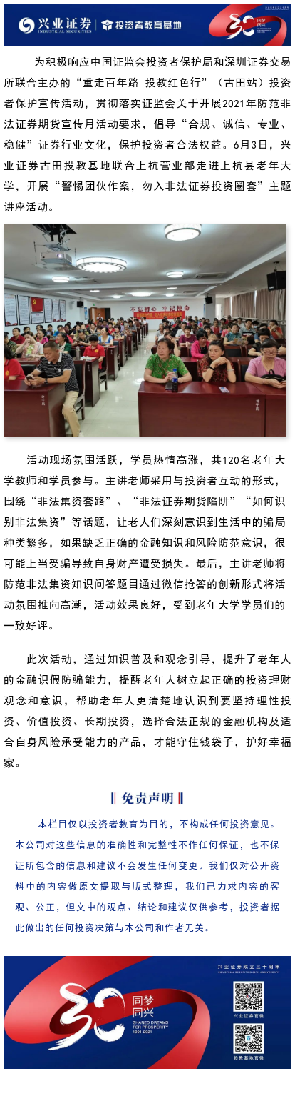 【兴·风采】“重走百年路 投教红色行” 投资者教育走进上杭县老年大学