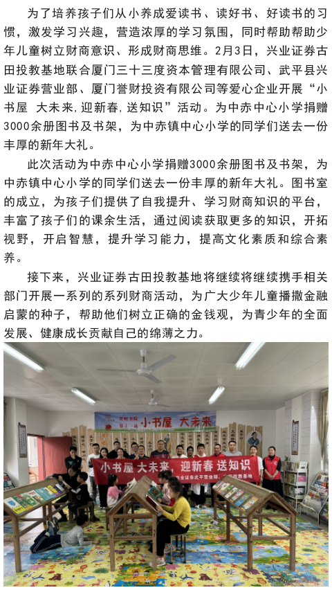 【兴·风采】兴业证券古田投教基地开展“小书屋 大未来,迎新春,送知识”活动