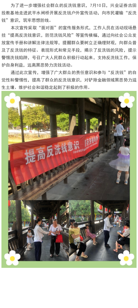 【兴·风采】兴业证券古田投教基地开展反洗钱户外宣传活动